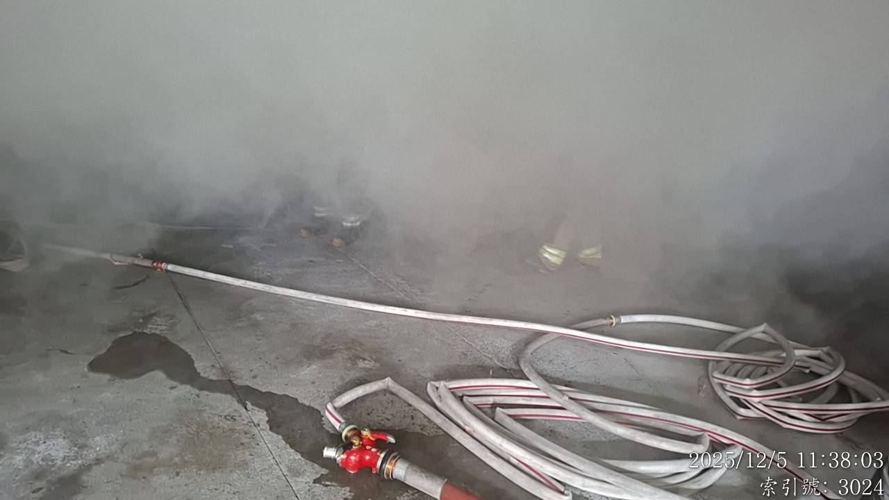 根據消防局說明,火警通報時間為11時22分,地點在東區怡東路150巷大鵬八村,消防人員抵達時地下室已冒出大量焦黑濃煙,能見度極低,疑似為停放車輛起火。為避免火勢蔓延,現場迅速拉水線攻擊並展開排煙作業,另由各分隊進入火場逐層搜索,所幸未發現受困民眾。