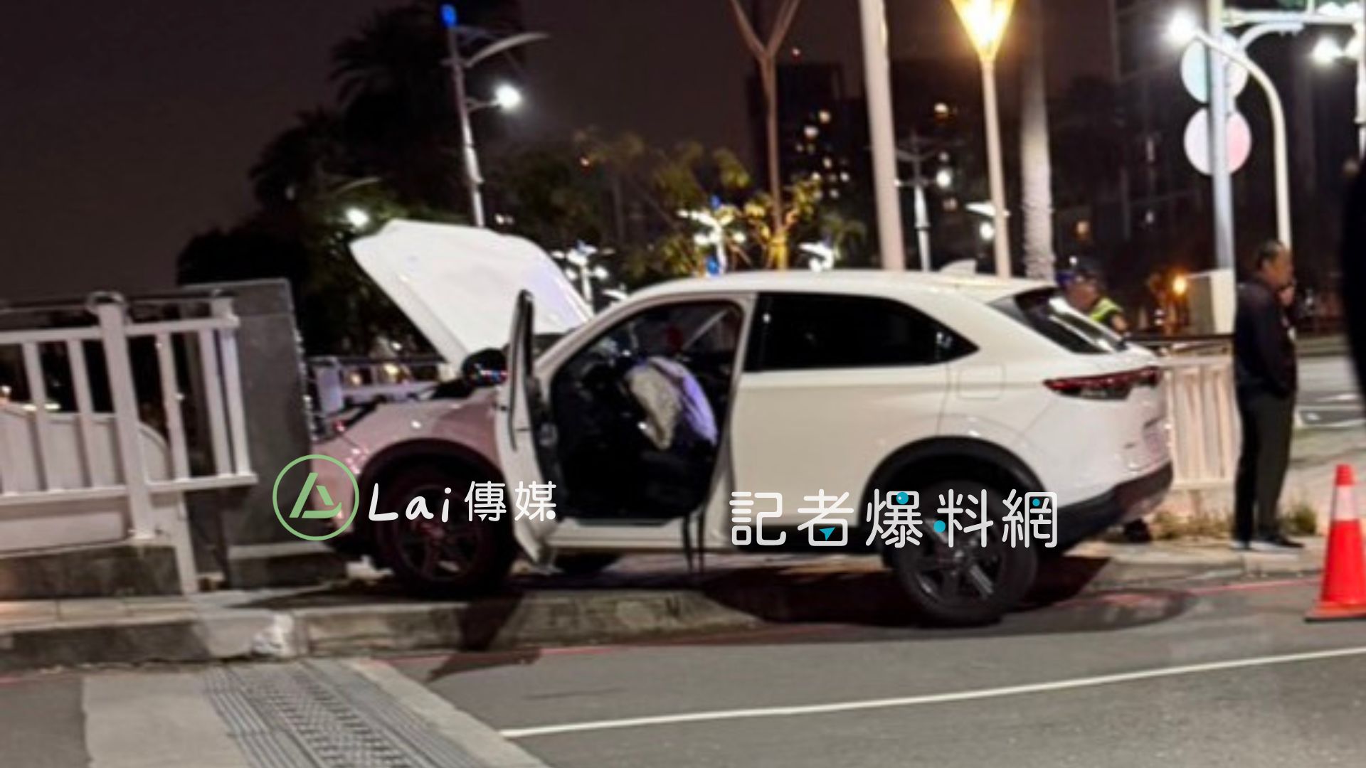 高雄前鎮區的海邦橋,今(5)日晚間10時許傳出車禍,有一輛休旅計程車,不明原因開上海邦橋的行人道後,自撞一旁的護欄,整輛車的車頭凹陷,警消出動消防車、救護車到場協助,後續將30多歲的駕駛送醫,至於詳細情形還有待進一步釐清。