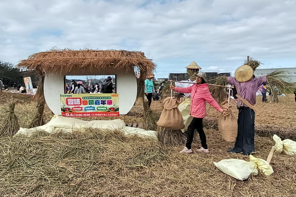 ▲新竹縣新豐鄉114年稻米產業文化暨地瓜節「豐味田園嘉年華」今(12/6)日在新豐鄉中崙三元宮旁農地熱鬧舉行,千人齊聚焢窯,享受農村樂、品嘗幸福農村味。